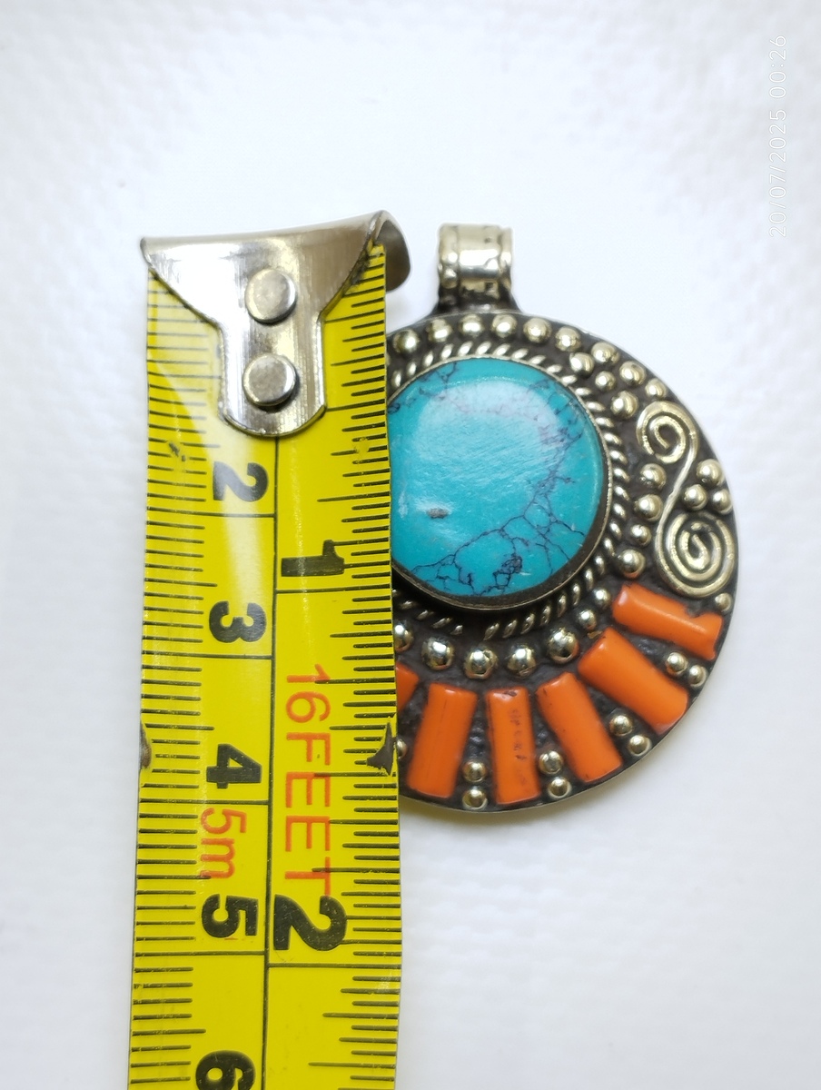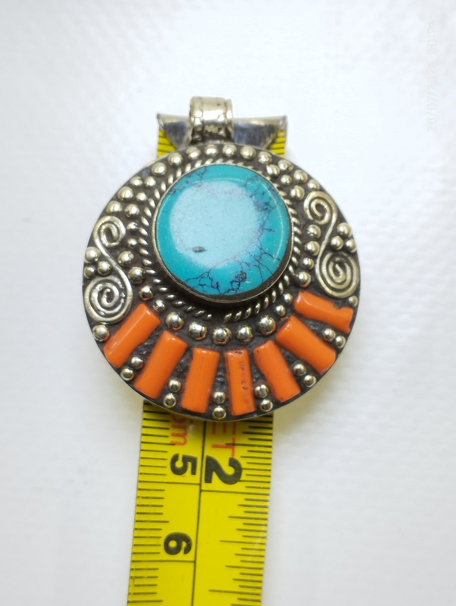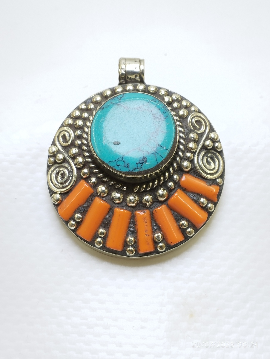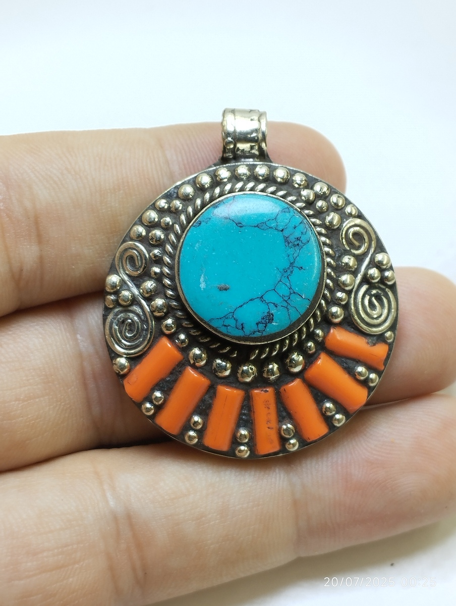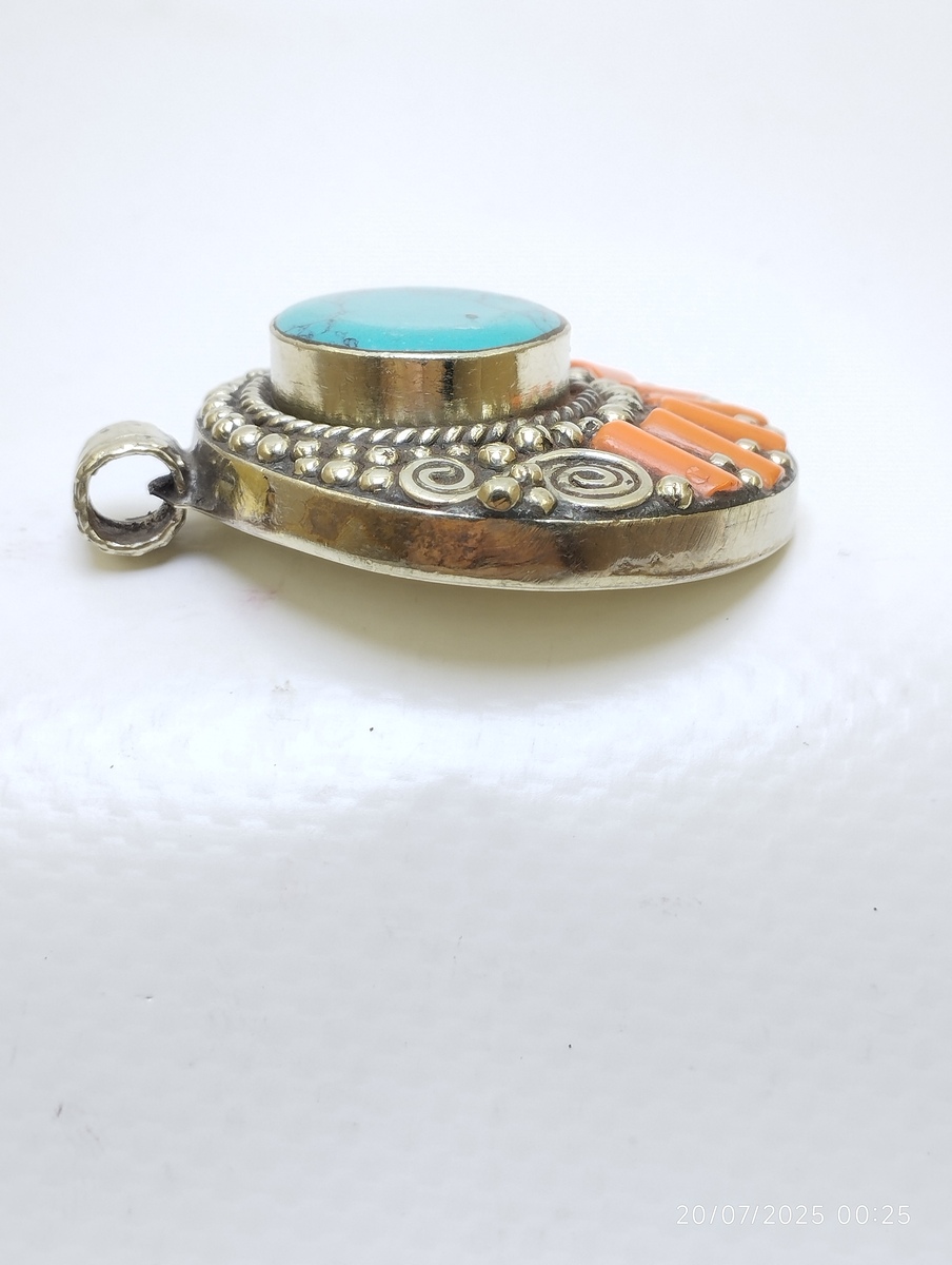 - Tibetan Turquoise Coral Handmade Ethnic Gift Nepali Jewelry Pendant