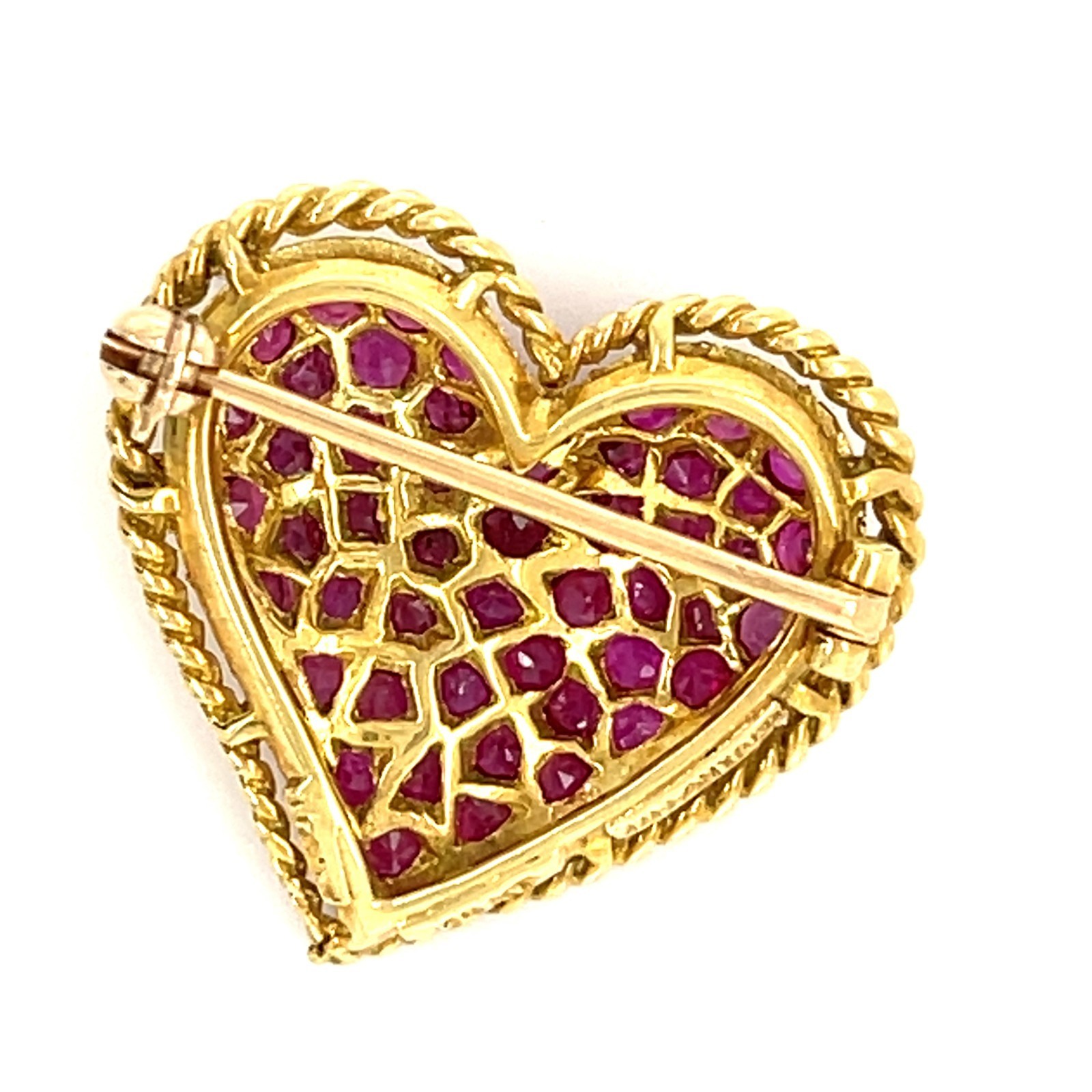 Beautiful 18k Yellow Gold Brooch With Pave Set Round Rubies by Tiffany Co.
