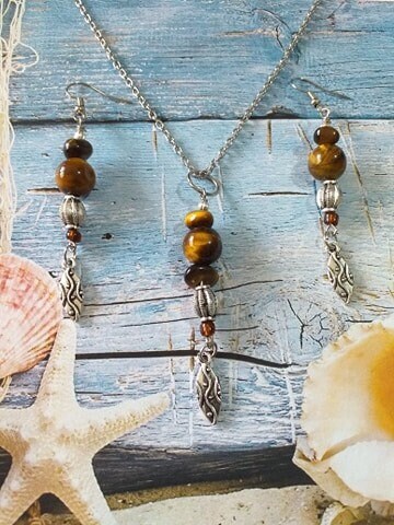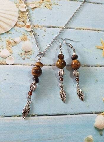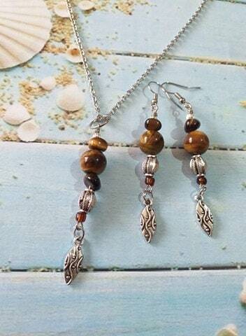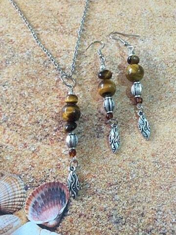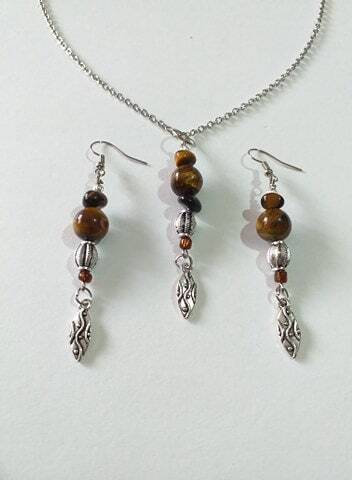 Tiger eye Victorian set necklace earrings Bohemian necklace and earrings .
