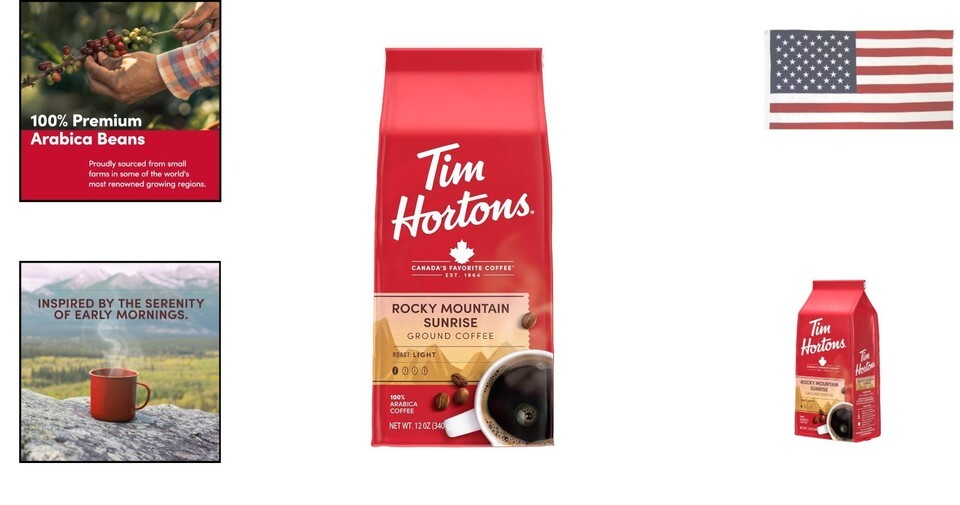 - Tim Hortons 100% Arabica Light Roast Rocky Mountain Sunrise Ground Coffee, 12...