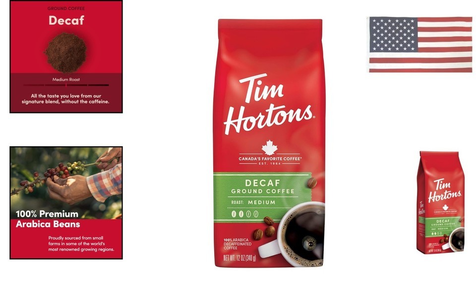 - Tim Hortons 100% Arabica Medium Roast Decaffeinated Ground Coffee, 12 Ounce (...