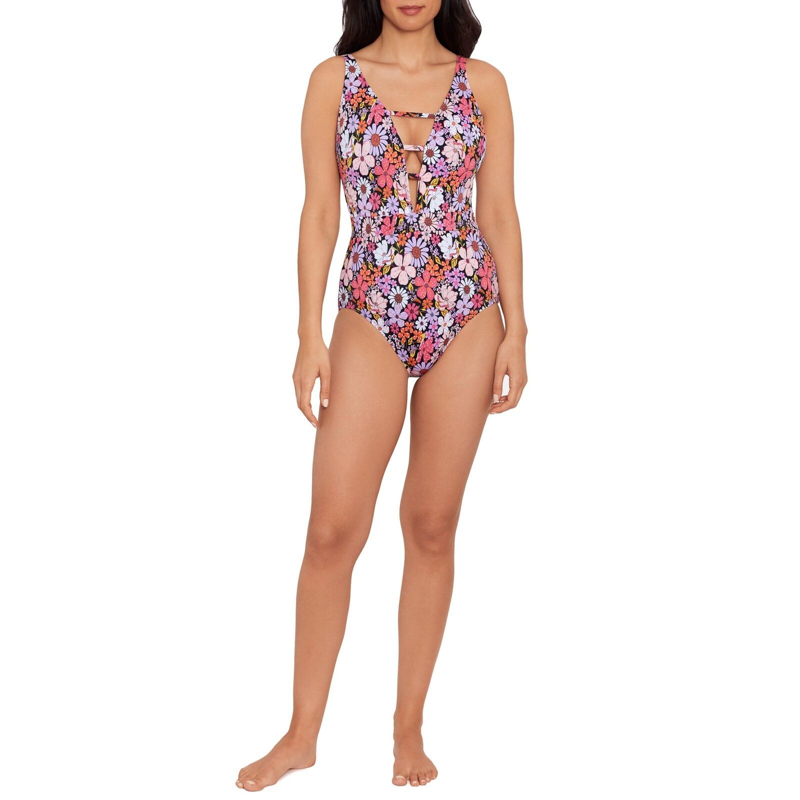 Time and Tru Women's V Strappy Front One Piece Swimsuit Be summertime chic in this floral Time and Tru V Strappy Front One Piece Swimsuit. In this swimsuit, you're ready for all summer has to offer!! Women One-pieces Adjustable Straps Bikini Fit Allover floral print