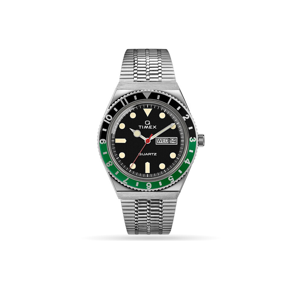Primary image for Timex Q Re-issue of 1970's 38mm Stainless Steel Bracelet Watch Black Dial