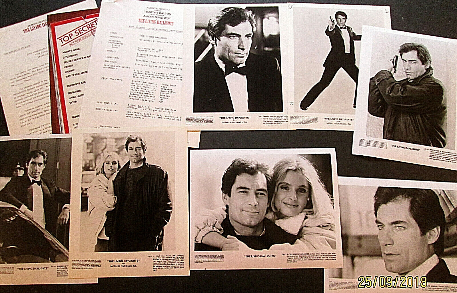 TIMOTHY DALTON AS JAMES BOND 007 (THE LIVING DAYLIGHTS) ORIG,STUDIO PHOTO LOT WITH PAPERWORK INFO ON THE FILM