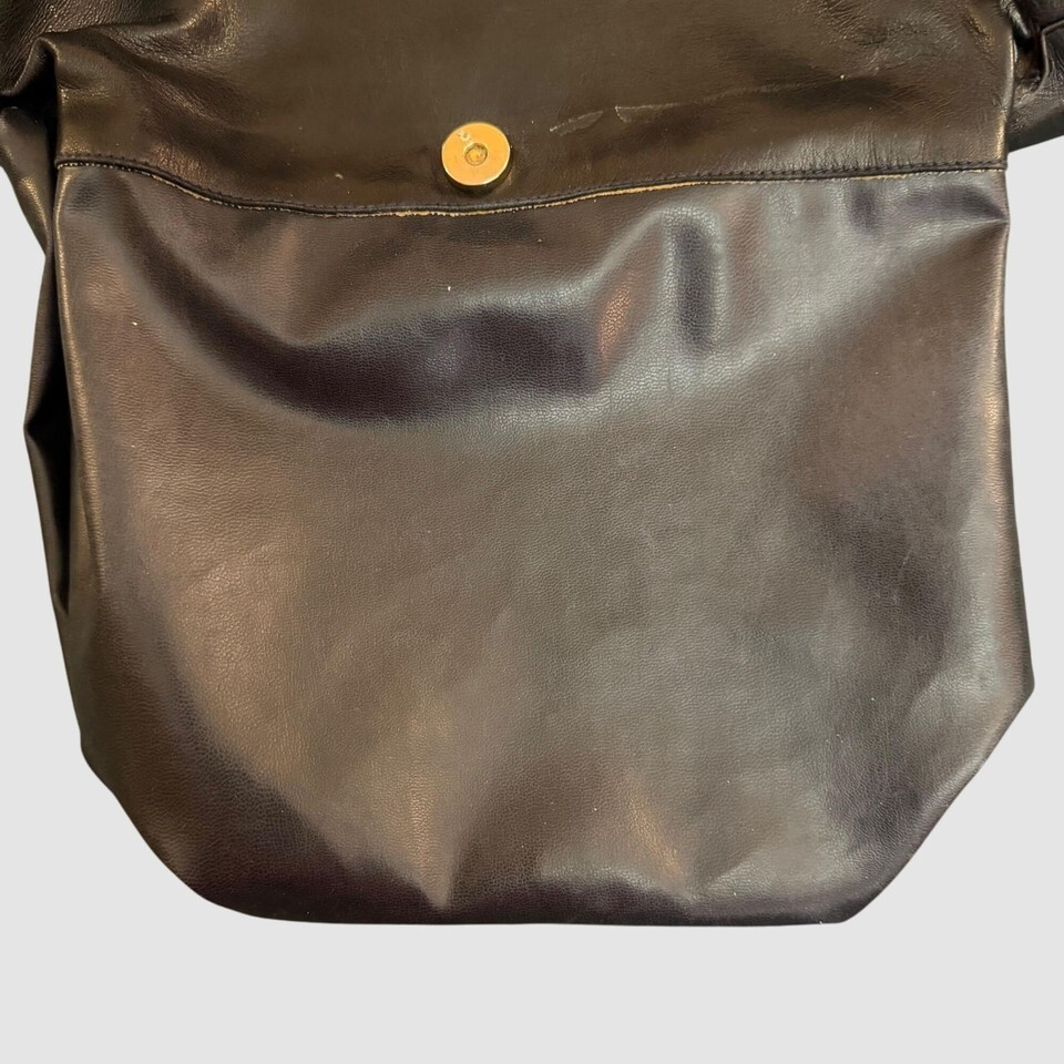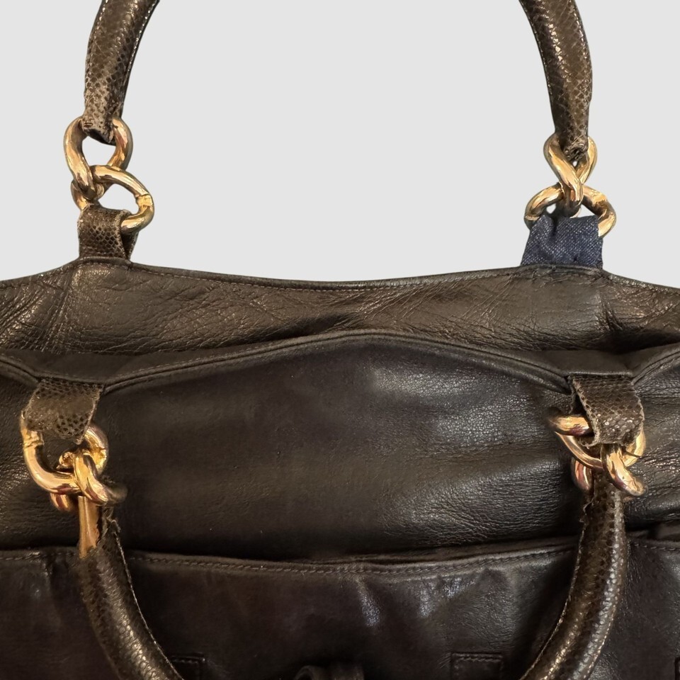 Tobias Italian Black Leather Tote Silver Chain Handle Slouchy Large Bag 16"x14"