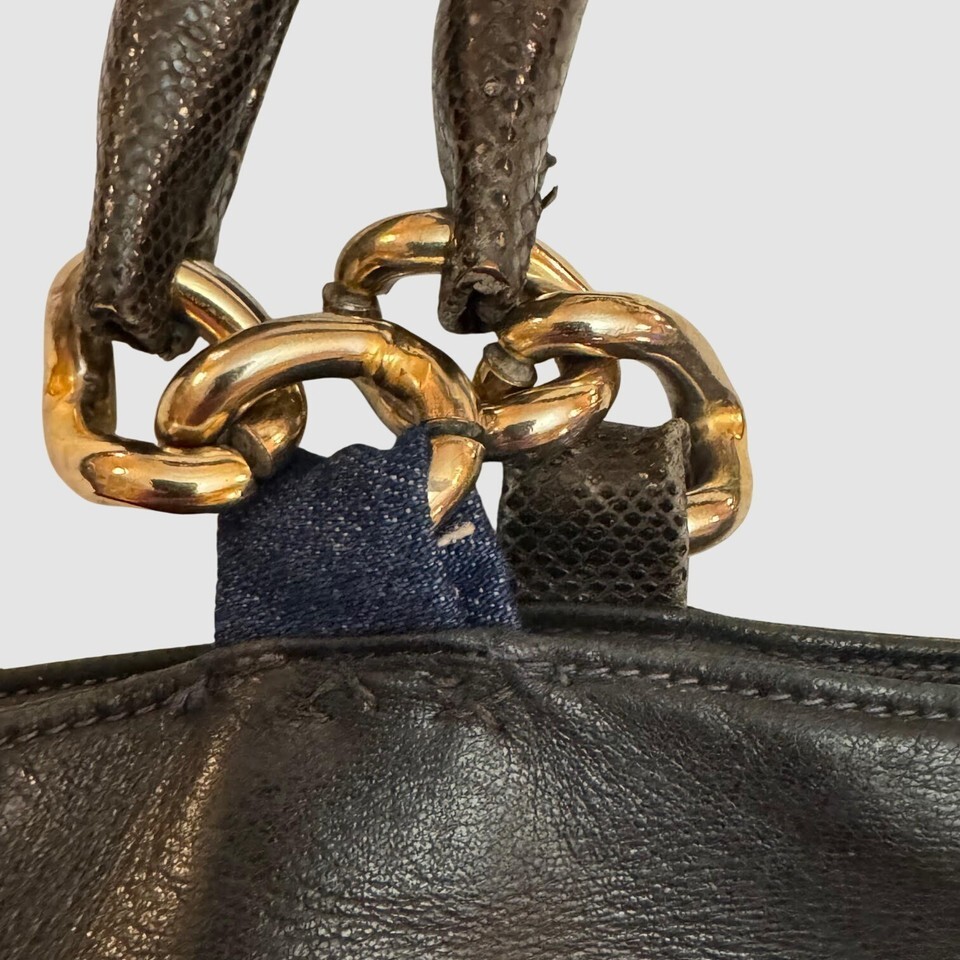 Primary image for Tobias Italian Black Leather Tote Silver Chain Handle Slouchy Large Bag 16"x14"