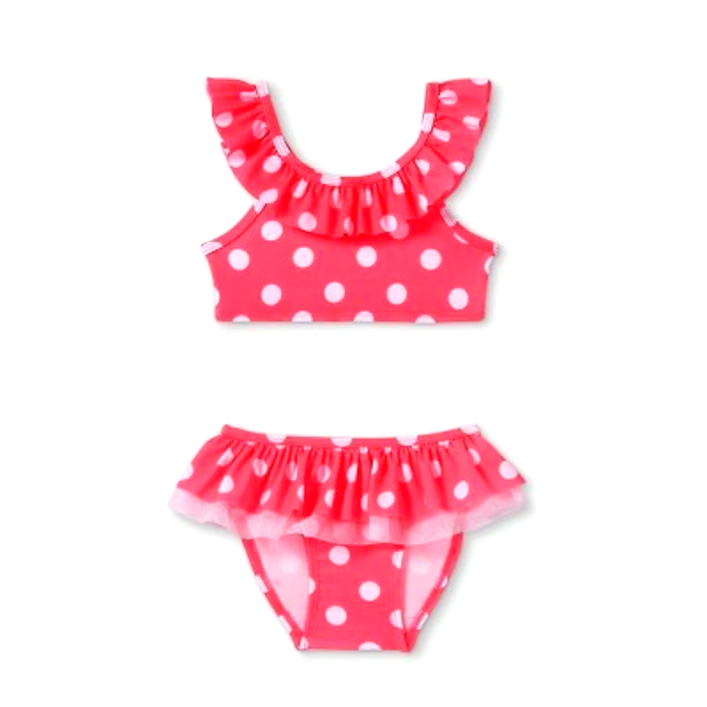 Toddler Girls Polka Dot Print Two Piece Swimsuit by Cat Jack (Sz 3T) Noen Pink with Tool Detail - NEW!!!