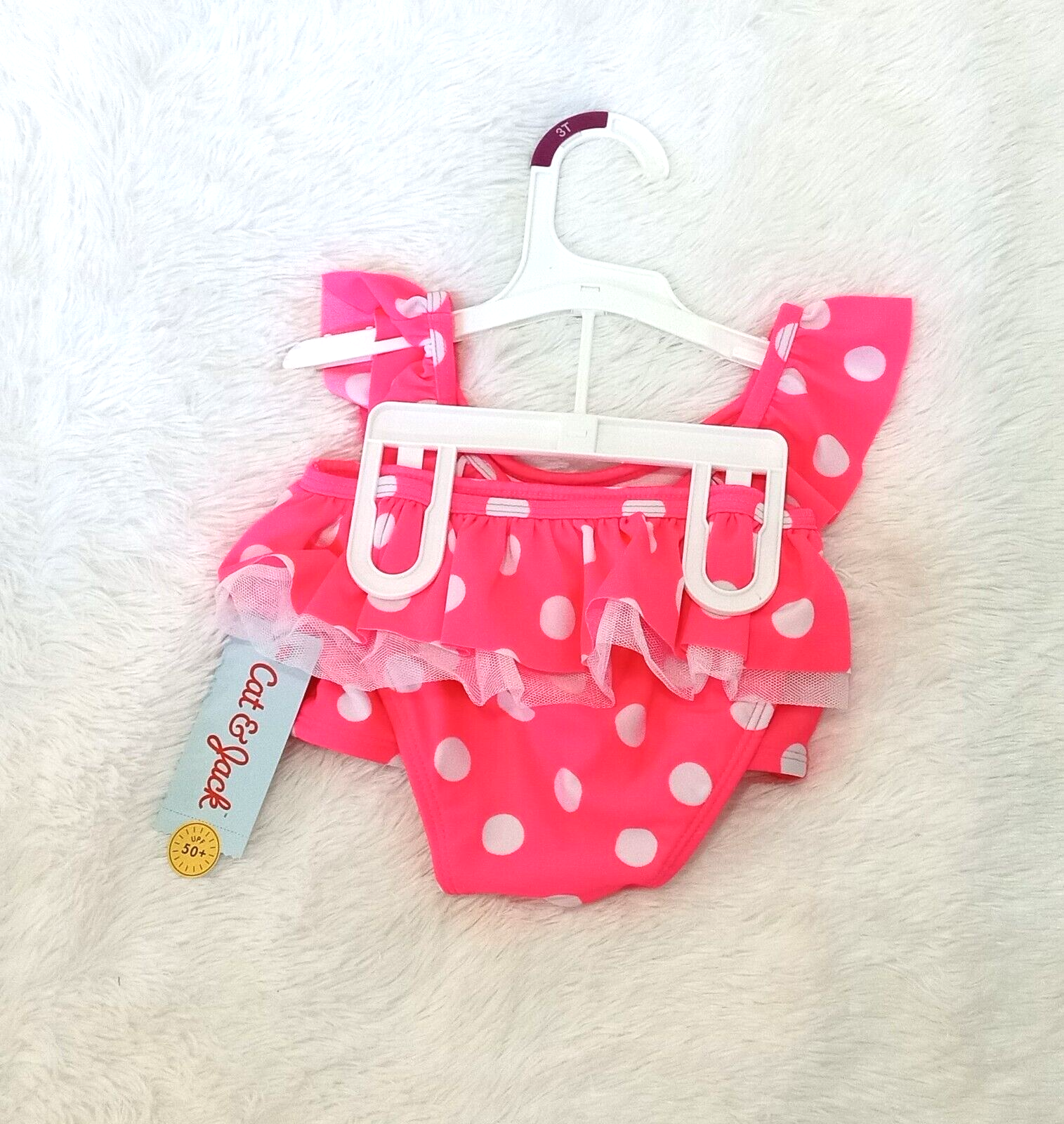 Get your little girl ready for a fun day at the beach with this adorable two-piece swimsuit by CAT JACK. The neon pink color and polka dot print make it a standout choice for any young girl. This swimsuit is designed for girls in size 3T and is perfect for a day of splashing and playing. Made with no modifications, this swimsuit is a great addition to your baby's wardrobe. The brand CAT JACK is known for its quality and this swimsuit is no exception. Don't miss out on this cute and comfortable choice for your little girl.