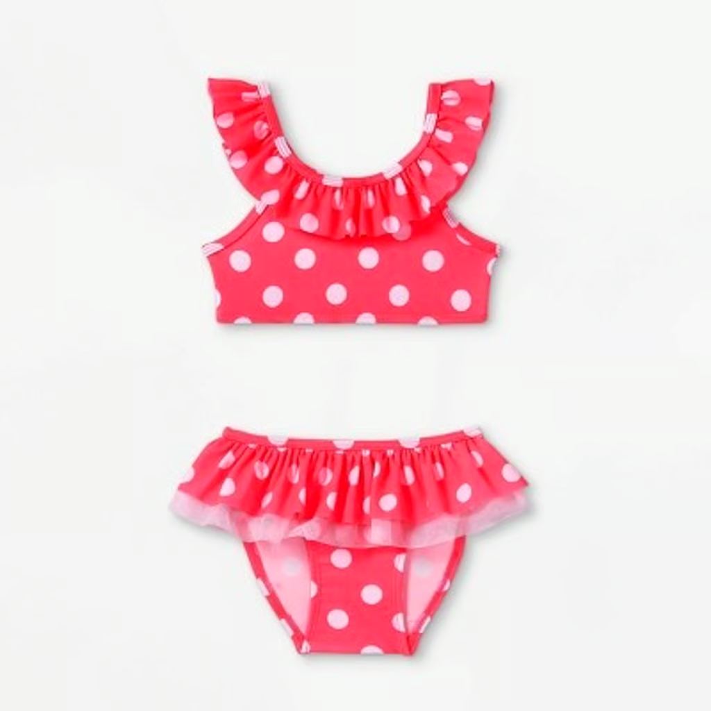 - Toddler Girls Polka Dot Print Two Piece Swimsuit by Cat & Jack (Sz 3T) Noen Pink
