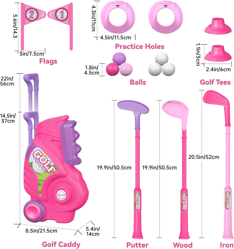 Toddler Golf Set for 1 2 3 4 Years Old, Upgraded Kids Golf Cart with Unique Shoulder Strap Design, Indoor and Outdoor Golf Toys for Boys Girls (Pink)