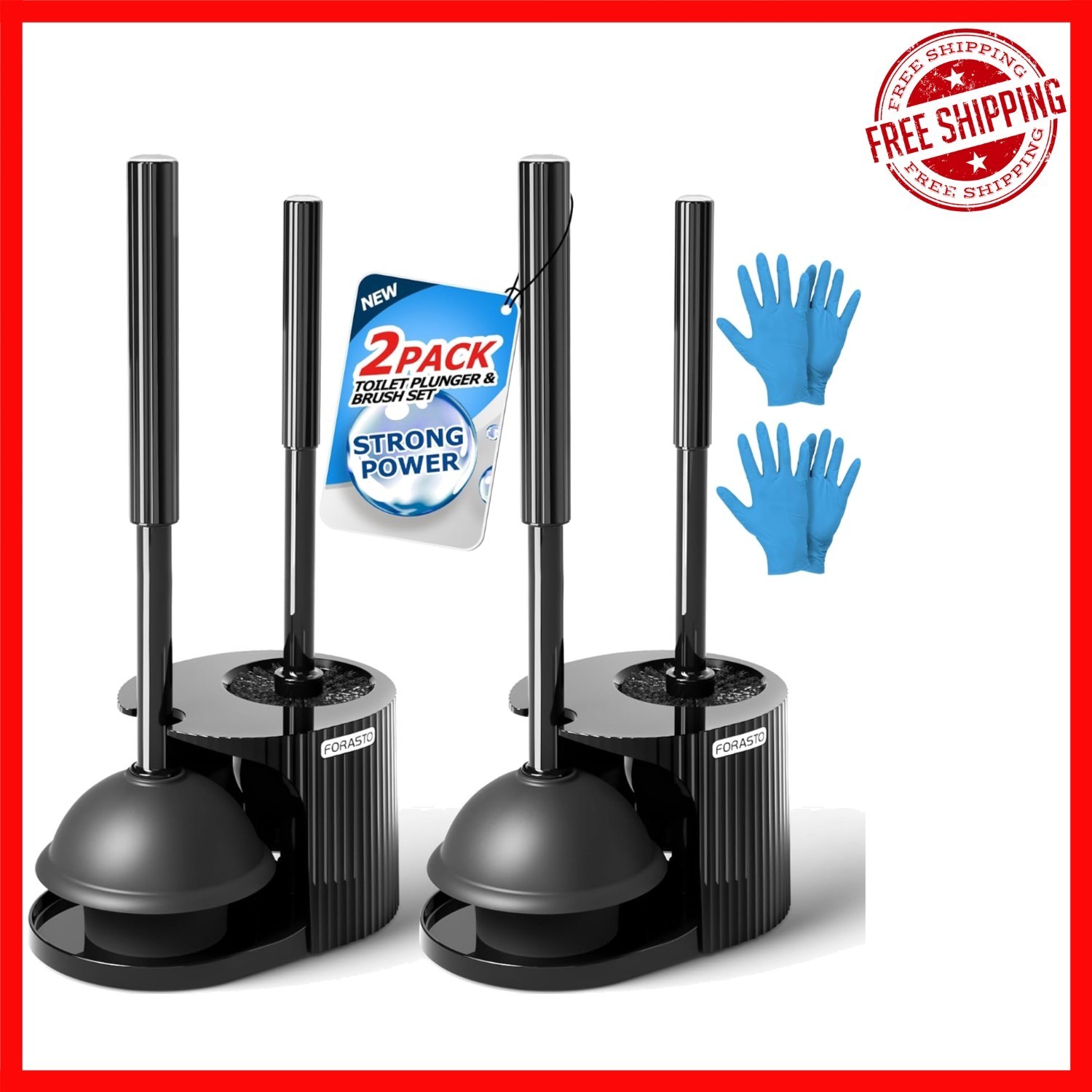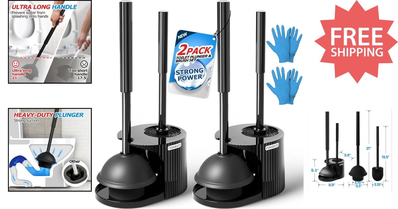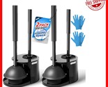 Toilet Cleaning Essentials: 2-Pack Brush Plunger, Extended Handle