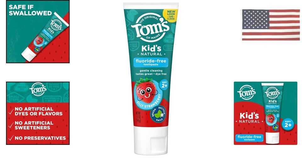 Tom?s of Maine Natural Kids Fluoride-Free Toothpaste, Silly Strawberry, 5.1 oz, Formula (Pack of 1) ? ? ? ? ? ? ? ? ? ? ? ? ? ? ? ? ? ? ? ? ? ? ? ? Tom?s of Maine Natural Kids Fluoride-Free Toothpaste Flavor: Silly Strawberry | Size: 5.1 oz (Pack of 1) What You?ll Get: One 5.1-ounce tube of Tom?s of Maine fluoride-free toothpaste designed especially for kids, featuring the delightful Silly Strawberry flavor. Key Features: Fluoride-Free: Our kids' natural toothpaste utilizes calcium and silica to gently clean and protect tiny teeth. Delicious Flavor: Designed for your child's taste buds, this toothpaste helps foster good brushing habits with its fun, fruity flavor. Eco-Friendly: The recyclable tube promotes sustainability?just replace the cap and recycle with #2 plastics. Natural Ingredients: Contains no artificial preservatives, colors, or flavors and is entirely cruelty-free, proudly not tested on animals. Trusted Brand: Recognized as the #1 kid?s natural toothpaste product (Nielsen Jan. 2021). Benefits for Parents and Kids: Safeguarding your child?s smile without the worry of fluoride ingestion. Encourages fun and responsible brushing routines with a flavor they love. Peace of mind knowing that you are choosing a natural product made with your child?s health in mind. Supporting a brand that prioritizes sustainability and community through charitable contributions. Why Choose Tom?s of Maine Natural Children?s Fluoride-Free Toothpaste? As a parent, you want the best for your child. Choose Tom?s of Maine Natural Fluoride-Free Toothpaste for a balance of health, flavor, and responsibility. With all-natural ingredients and delicious Silly Strawberry flavor, your child will be excited to brush. Plus, you can feel good about supporting a brand that uses sustainable practices and contributes to worthwhile causes. Order now and give your children the gift of a radiant smile while instilling good dental habits that last a lifetime. Shipping Free Fast Shipping - We offer free shipping to most of the USA with a normal delivery time of 3-7 days. However, due to the current situation, additional delivery time (up to 3 weeks) may be required for some items. Alternative Carriers - We may use alternative carriers (e.g. USPS, FedEx, UPS, etc.) to ensure your package arrives safely and on time. Due to the use of multiple carriers, we are unable to provide a tracking number automatically. Handling Time - Orders are processed and shipped within 1-2 business days of receiving cleared payment. Shipping Restrictions - Shipping to Alaska, Hawaii, Puerto Rico, Guam, and other US territories may incur shipping charges or delivery restrictions. Please contact us before ordering, or your order can be refunded/cancelled. State Restrictions - There may be restrictions based on your state of purchase. For example, certain items may not be shipped to California due to state regulations. Contact for Tracking Updates - If you require tracking updates or have any concerns about the delivery of your order, please feel free to contact us, and we will be happy to assist you. Return 30-Day Hassle-Free Returns - We want you to be completely satisfied with your purchase. If you are not, you can return the item within 30 days of receiving it for a full refund or exchange. Easy Return Process - To start a return, simply contact us and we will provide you with a prepaid return shipping label and detailed instructions. Restocking Fee - There are no restocking fees for returns. However, the buyer is responsible for return shipping costs if the return is not due to a seller's error. Refund Processing Time - Refunds will be processed within 5 business days of receiving the returned item in its condition. Payment We accept all major credit cards, PayPal, and Apple Pay for your convenience. Your payment information is secure and encrypted to ensure a safe and seamless transaction. Please complete your payment within 3 days of purchase to avoid any delays in shipping. Feedback Your feedback is extremely important to us. We strive to provide the best products and customer service possible. If you are satisfied with your purchase, please take a moment to leave us a positive review. If you have any concerns or issues with your order, please contact us before leaving negative feedback. We are committed to resolving any problems and ensuring your satisfaction. Contact Us If you have any questions or concerns, please feel free to out to our customer support team. You can contact us through the messaging system. We are available Monday to Friday, 9:00 am to 5:00 pm EST, and we will do our best to respond to your inquiry within 24 hours. Buy it now and enjoy a pleasant shopping experience! UPC: 077326830741 Expiration Date: Not specified Unit Quantity: 1 Active Ingredients: Fluoride Features: Cruelty-Free/No Animal Testing,Fluoride-Free,Natural Ingredients,No Artificial Preservatives,No Artificial Colors,No Artificial Flavors,Recyclable Tube MPN: Does not apply Type: Children's Toothpaste Product Line: Aquafresh Complete Care Flavor: Strawberry Item Weight: 5.1 oz Size Type: Standard Size Period After Opening (PAO): Not specified Model: Tom?s of Maine Antiplaque and Whitening