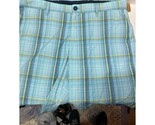 Tommy Bahama Shorts 10” Golf Casual Blue Aqua Yellow Flat Plaid Men’s Size 36