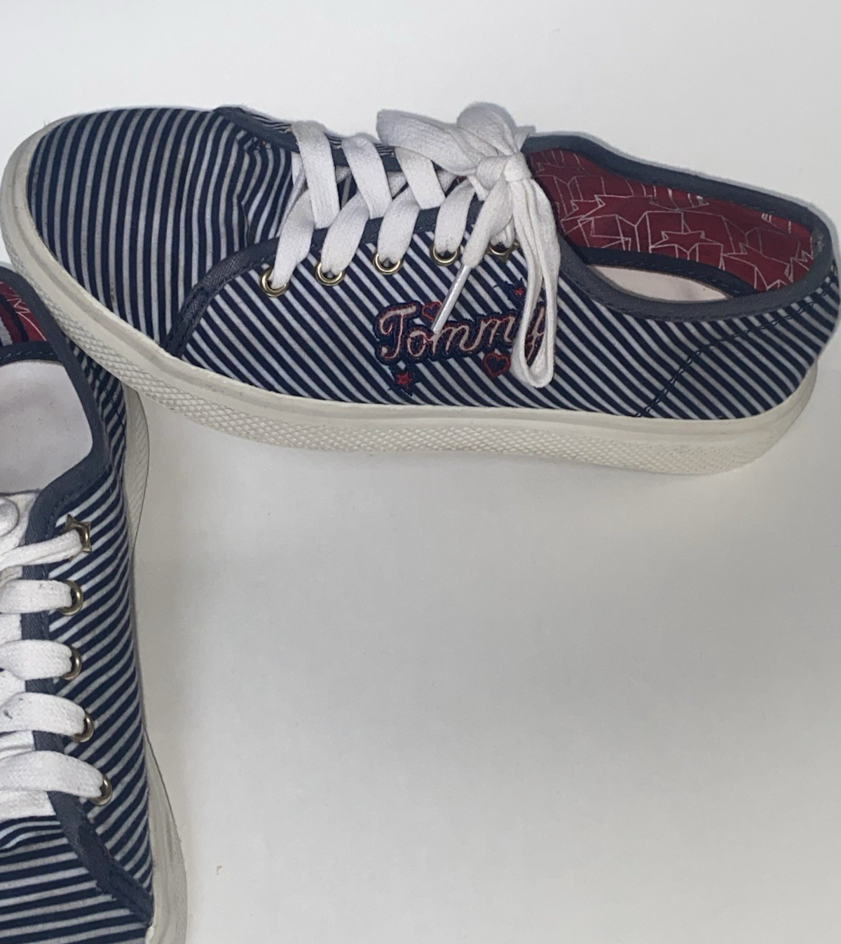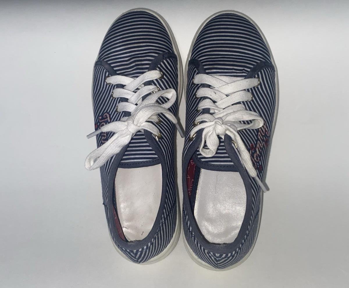 - Tommy Hilfiger Glam Bonnie Striped Blue White Sneakers Casual Shoes Kids Sz 4