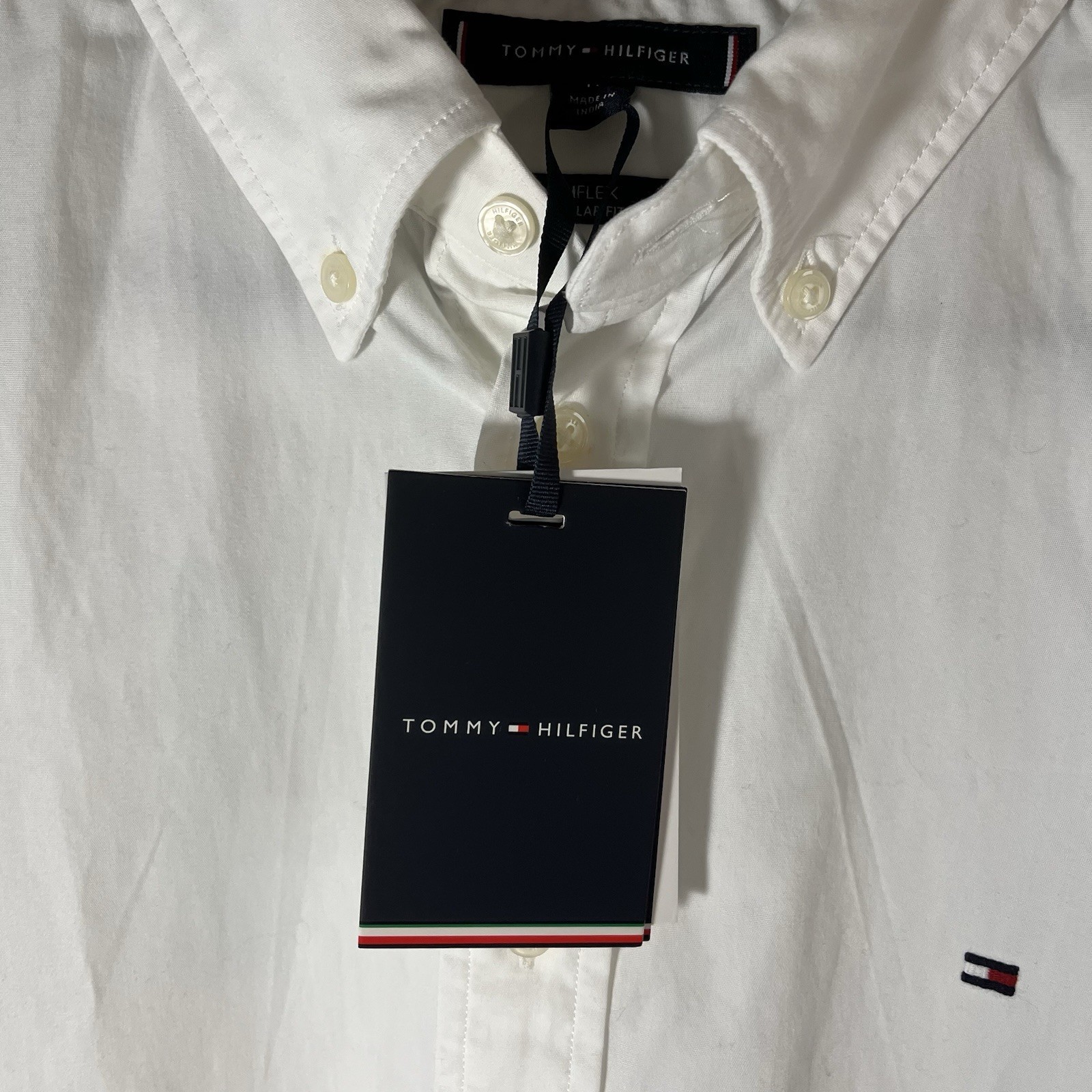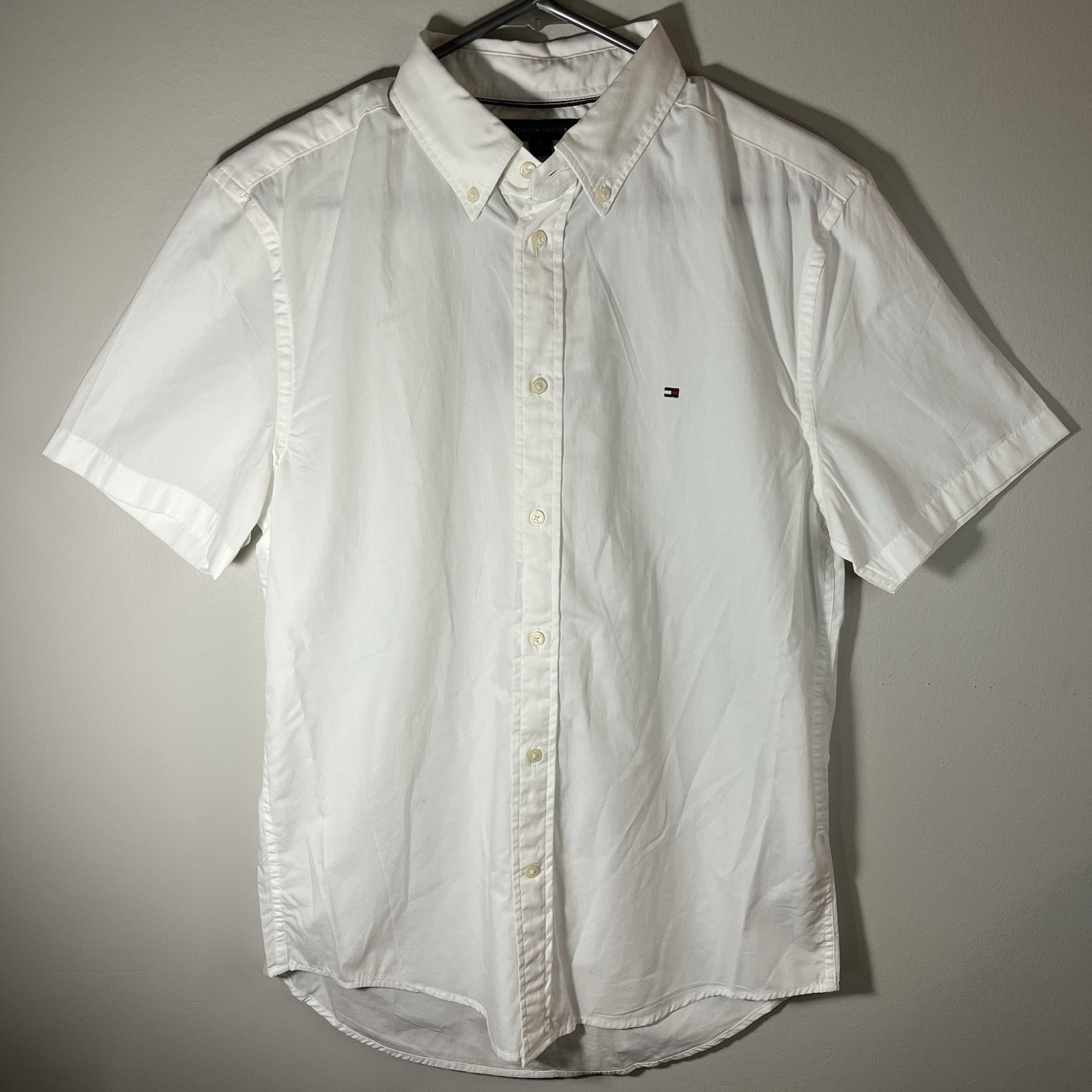 - Tommy Hilfiger Men's Regular Fit White Short Sleeve Button Up Shirt