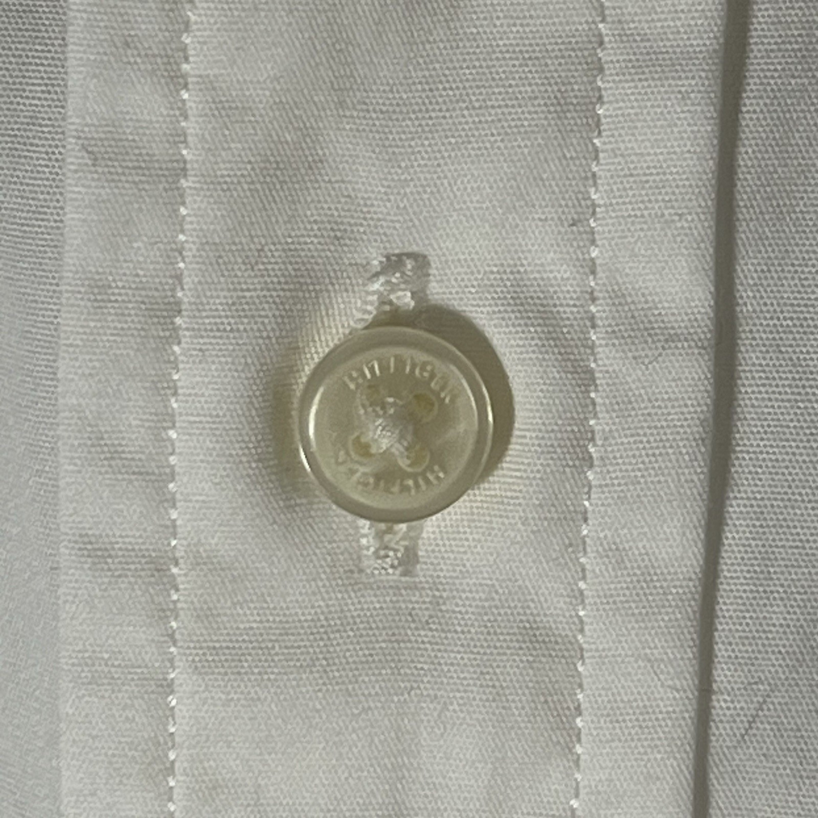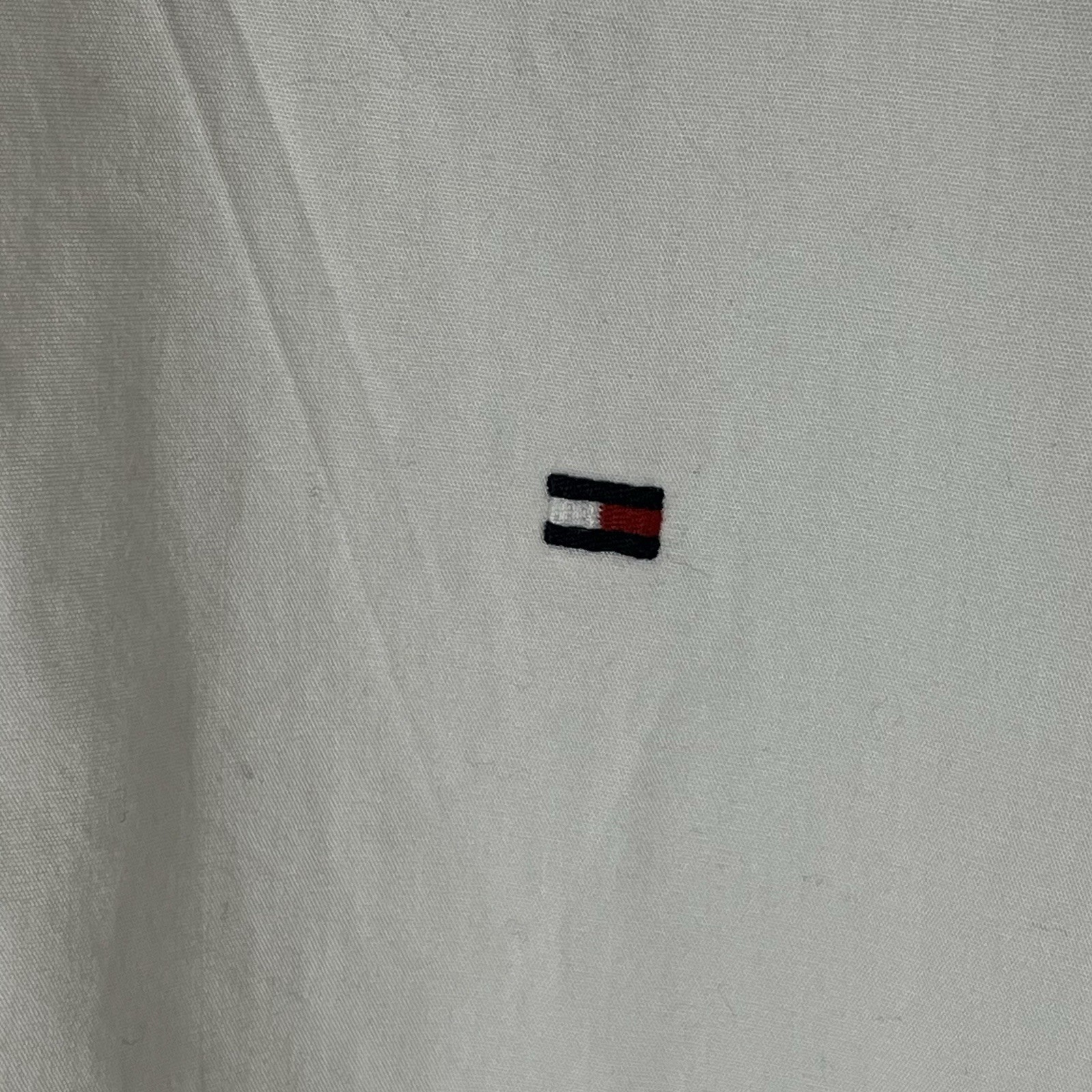 Stylish white button-down shirt by Tommy Hilfiger. Features short sleeves and a sleek design. Ideal for casual wear.