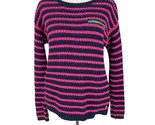 Tommy Hilfiger Sweater Womens Navy Blue Pink Striped Long Sleeve Knit Pullover