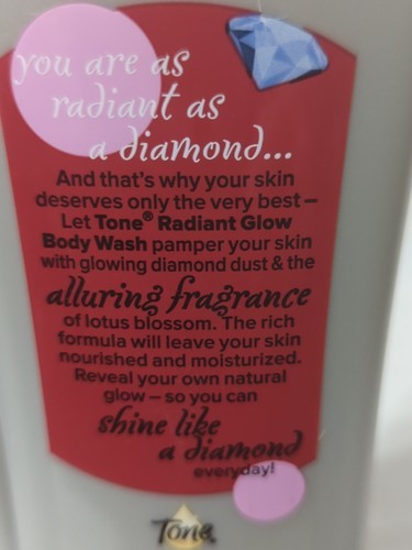Indulge your skin with this 2-pack of Tone Radiant Glow Body Wash, infused with Lotus Blossom and Diamond Dust for a radiant, illuminating cleanse. ? Scent: Lotus Blossom ? Infused with Diamond Dust ? Size: 16 oz each (Total: 32 oz) ? Gently cleanses while adding a healthy glow ? Leaves skin soft, fresh, and lightly scented Perfect for everyday use or a luxurious self-care treat. New, sealed, and ships fast! ? Shipping Returns Ships securely Handled within one business day. Ships via USPS Ground Advantage Free Returns accepted within 30 days?