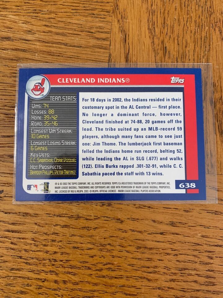 - Topps 638 Cleveland Indians Card