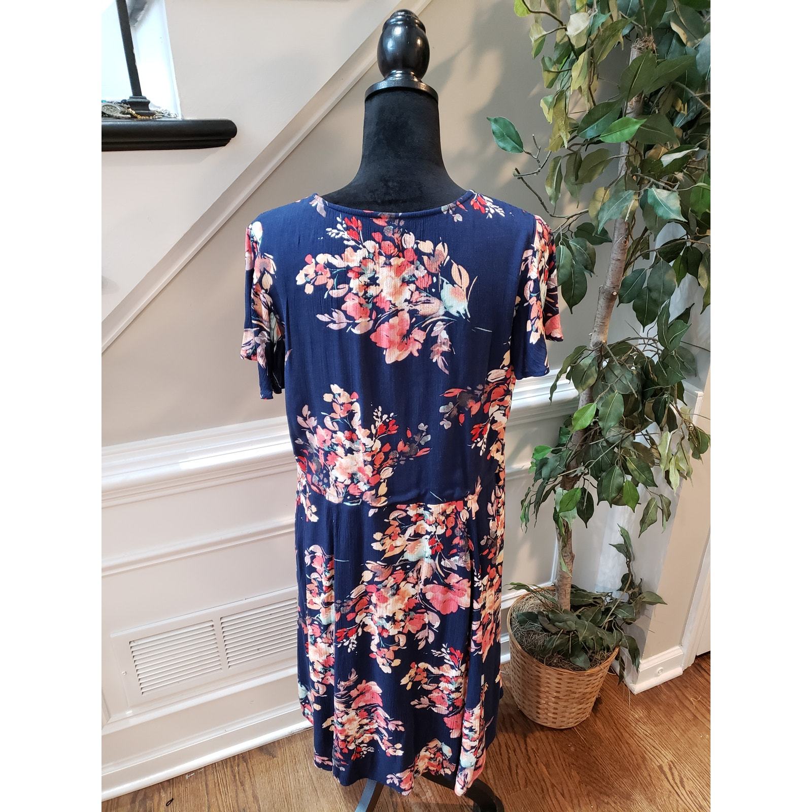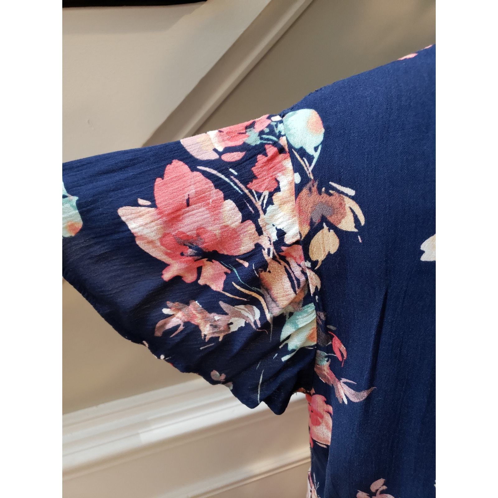 Color: Navy with Pink/Coral Floral Print