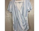 Torrid Super Soft Surplice Wrap Top Womens Blue White Stripe Ruched Stretch Sz 0 L/12 This item has been cleaned per's used clothing policy.