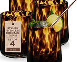 IMPULSE! Tortoise Leopard Print Brown 10 oz. Rocks Glasses, Set of 4 - Stylish Stemless Cocktail Cups Glass - Ideal Glassware Tumbler for Gin, Tequila, Vodka, Soft Drinks - 3.15 3.15 4.3 in