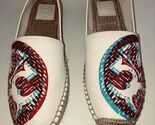 - Tory Burch 3D Logo Flat Women’s White Red Blue Print Canvas Espadrille Shoes