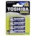 Product description: TOSHIBA is a world class brand, easily recognizable to consumers. Its batteries are characterized for their top quality characteristics, excellent reliability and performance, as well as their great design. Designed by Japanese engineers, it meets the highest standards of modern button batteries. Has a very long shelf life, a wide range of safe operation temperatures and is resistant to leaking. Features: Long-lasting Power: Compatible with high current equipment. Excellent shelf life: Minimal self-discharge which allows for long storage. Vibration resistance: Battery performance is maintained even in high vibration and shock in cordless equipment and outdoor applications. Compatible with high current equipment: digital camera's notebook computers, cellular phones, headphones. Nominal Voltage (V): 1.5 Alkaline Batteries.