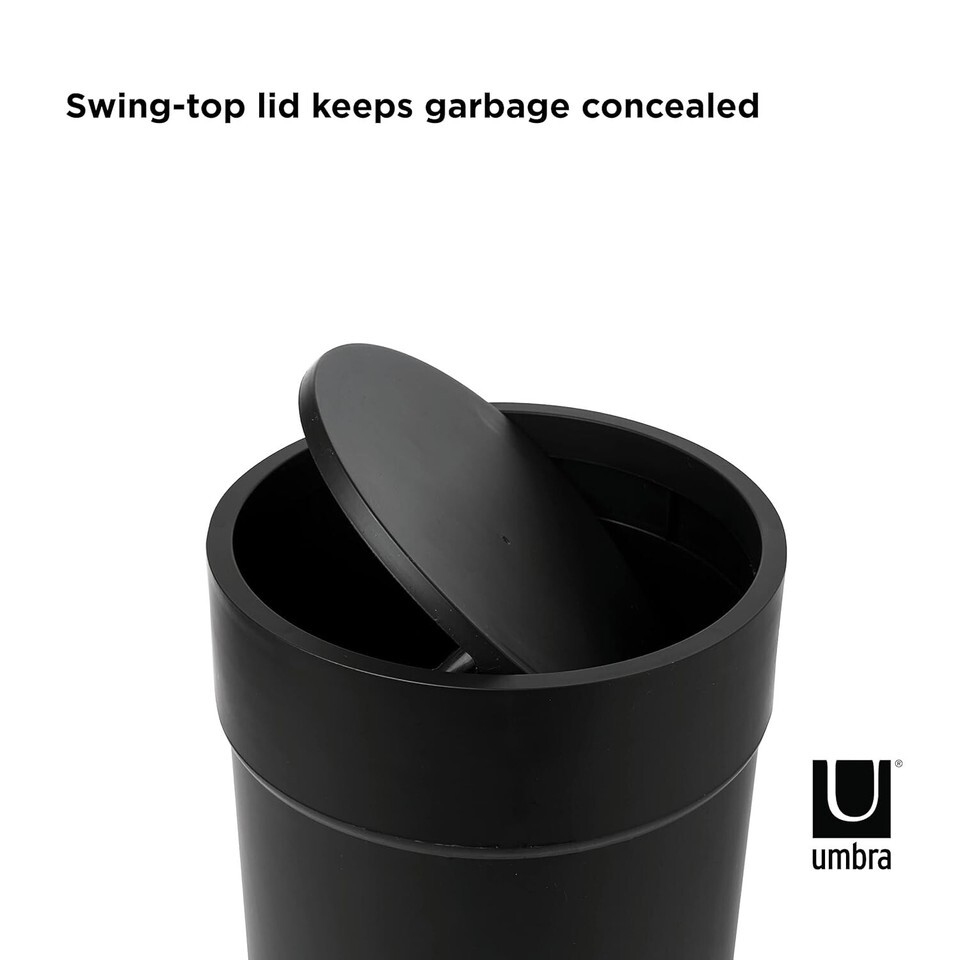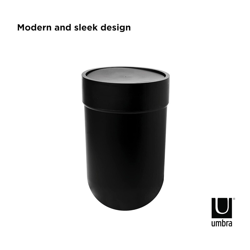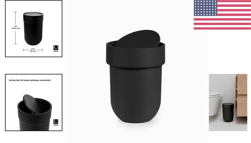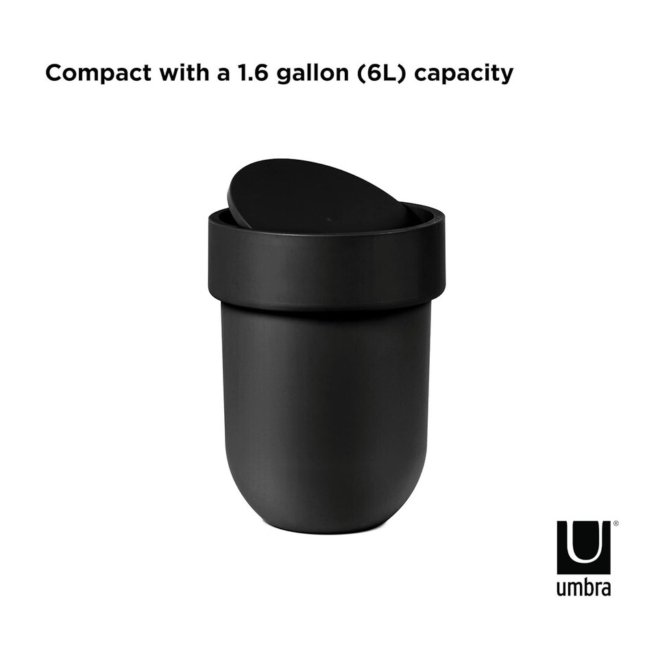- Touch 6L Modern Black Waste Can with Swing Lid - Elegant Bathroom Trash Bin
