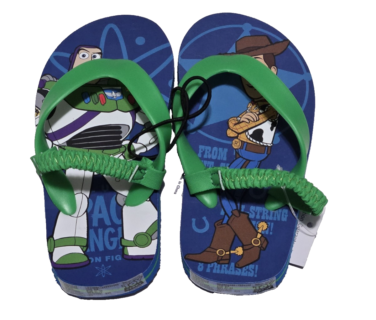 Disney Toy Story Toddler Flip Flops New with tags Features: Material: Polyurethane upper/outsole; Polyvinyl Chloride strap Care: Wipe clean Country of Origin: Imported Closure: Slip-on style with an elastic back-strap for a secure fit Width: Medium Features: Thong toe; printed character detail on footbed Payment: Please pay within 2 days, or contact me; I'm really understanding if you need to cancel - does take a cut whether I get paid or not though, so I would have to open a case after 2 days if no contact. Thank you for understanding! Shipping: Shipping is Monday - Friday. No weekend shipping I ship the day after I receive payment, if payment via E-check, item will be shipped the day after payment clears. International Buyers - please note: Import duties, taxes, and charges are not included in the item price or shipping cost. These charges are the buyer's responsibility. Please check with your country's custom office prior to bidding or buying to determine what your additional costs will be. Returns: Returns are accepted 30 days after item is received, item must be unopened/unused/tag still attached. Return shipping is paid by buyer. Smoke free home Check out my store for more toddler shoes!