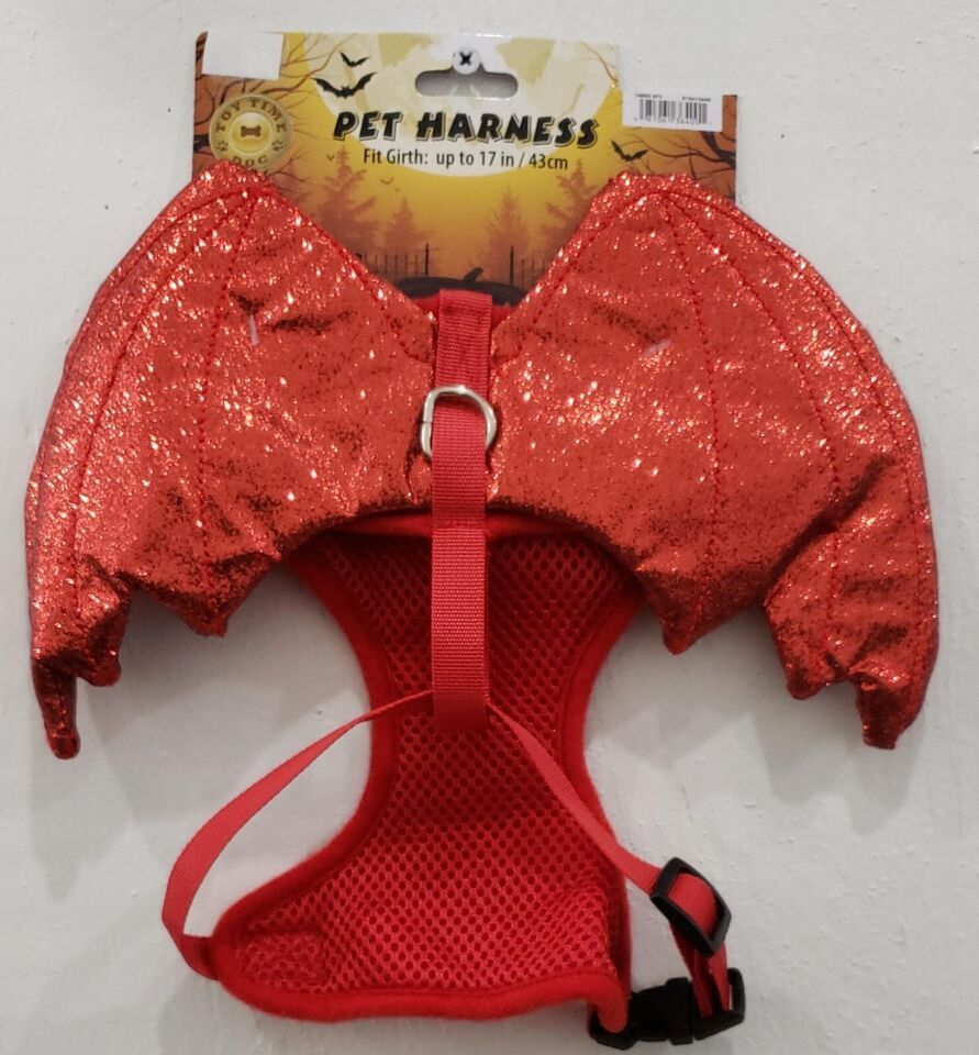 Toy Time Pet Harness Demon Devil Wings Dog Halloween Costume Orange Size S/M (17in) Dress up your furry friend for Halloween with this Toy Time pet harness costume. The vibrant orange color. Devil wing design make it a standout choice for any costume party. Made from durable polyester material, This costume is perfect for your pet's comfort and safety. The harness is designed for dogs of size S/M Features a range of aspects including the Toy Time brand, Halloween costume theme, and dog size. This costume is perfect for any pet owner looking to dress up their furry friend for Halloween.