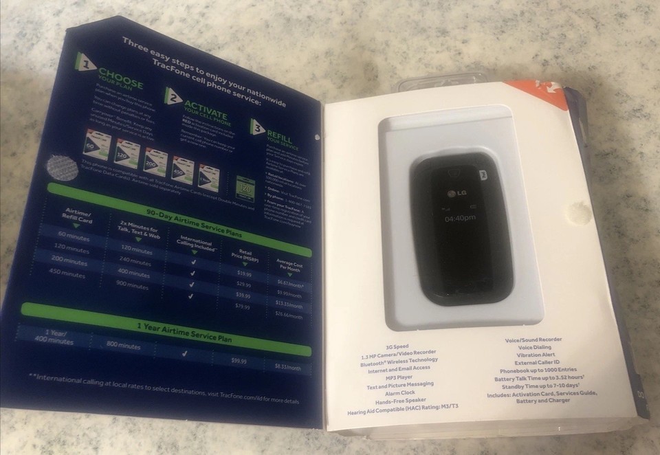 - TracFone LG440G S Black Flip Phone Pre paid New Never Used open package