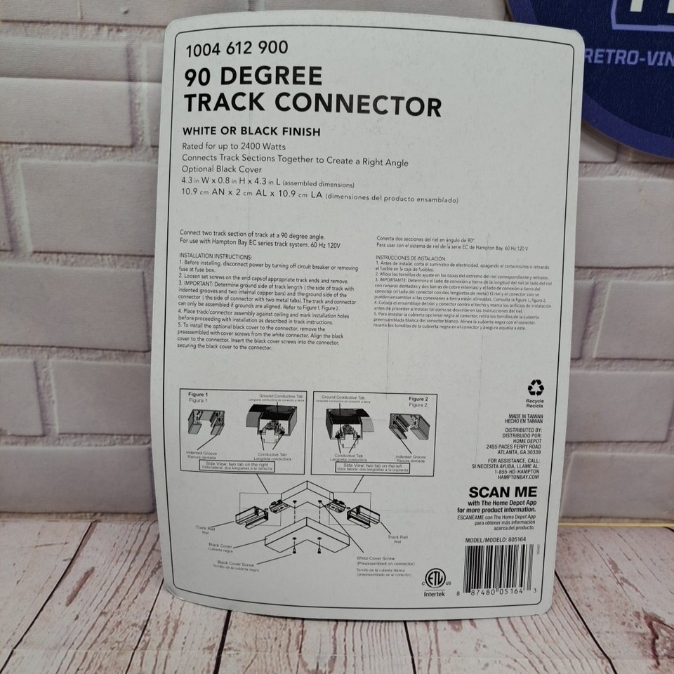 - Track Lighting Corner Connector 90º White or Black Hampton Bay Up To 2400 watts