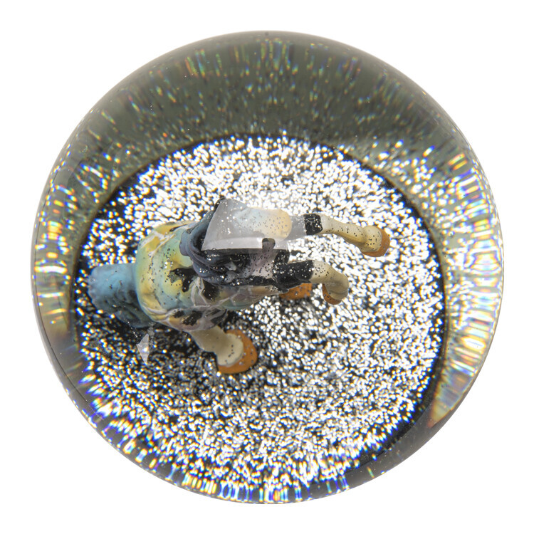? This Trail Of Painted Ponies Water Globe measures 5.25" tall, 4" wide and 4" deep approximately. The globe spans 100mm (about 4"Inches). It weighs about 2 pounds.