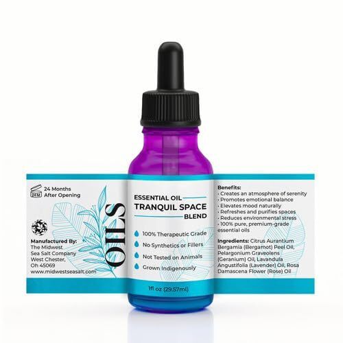 Add the Tranquil Space blend to your favorite diffuser for an instant room transformation. For a refreshing room spray, mix a few drops with distilled water. Enhance your bathing experience by adding several drops to your Midwest Sea Salt bath soak.