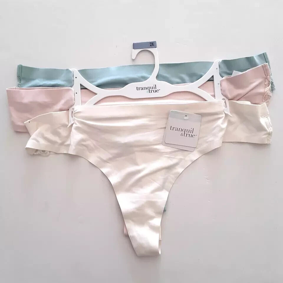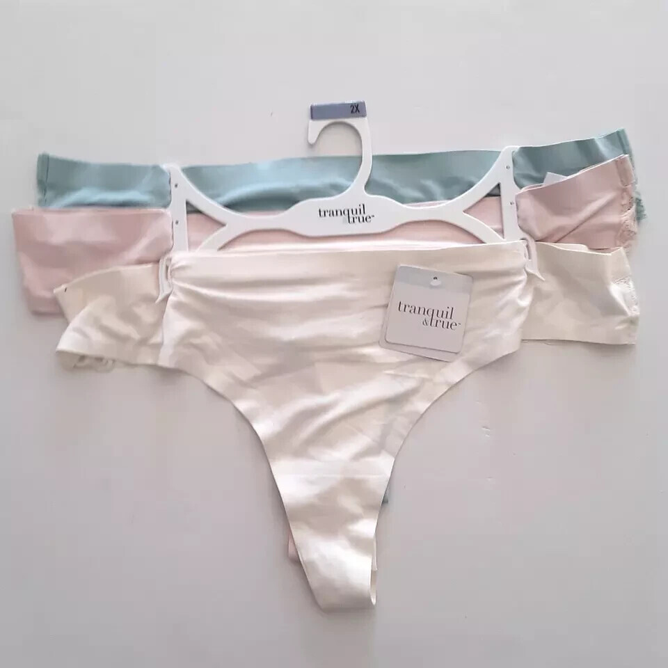 Tranquil & True Womens Size 3X Thongs Brushed Microfiber Lace Back 3 Pack