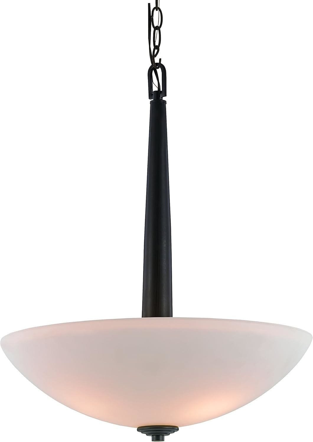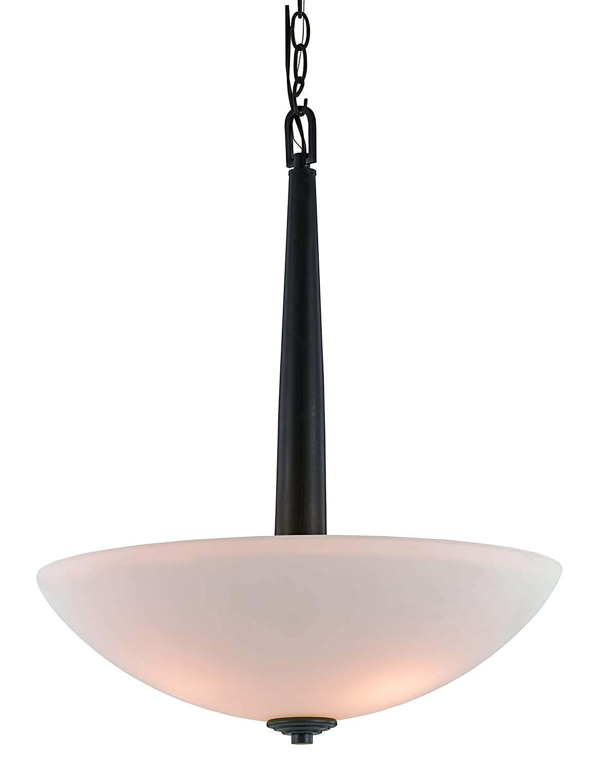 Item Notes: Rubbed Oil Bronze finish Fixture uses 3 Medium base 60 watt bulbs Fixture uses white Frost glass Full-room illumination Bowl pendant design