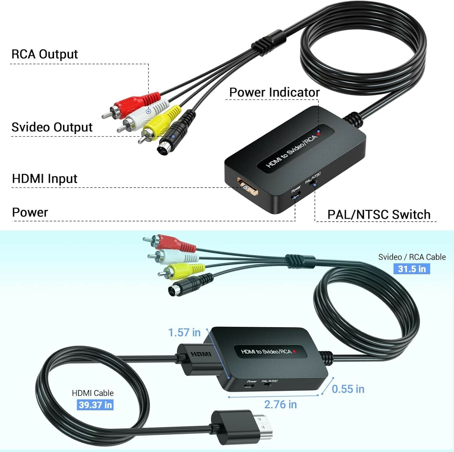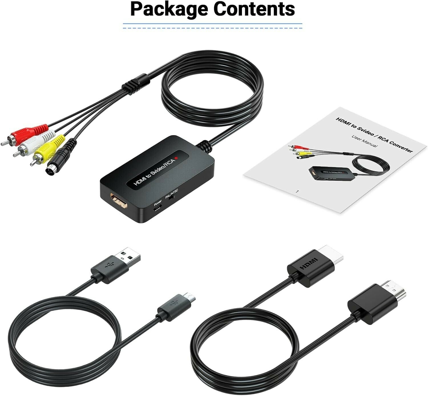 Features: Plug and Play,All Cables Included,HDMI to RCA Svideo Converter,Wide Compatibility,Assurance of Support,Scaling Technology