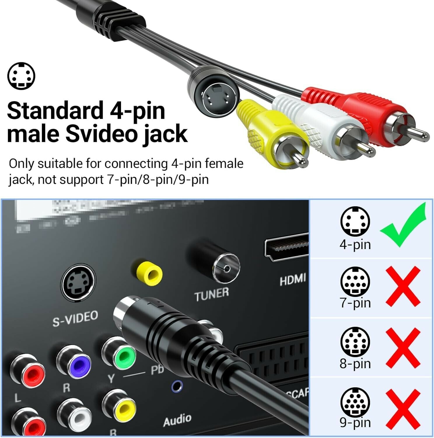 Experience seamless connectivity with our all-in-one HDMI to S-video RCA converter kit. This comprehensive package includes all necessary cables?HDMI, USB power, and composite AV cables?eliminating the need for additional purchases. Equipped with a built-in high-definition chip, the converter delivers vivid, high-quality visuals from HDMI devices to older TVs via S-video or RCA inputs, supporting resolutions up to 1080p. Its plug-and-play design ensures easy setup without driver installation. Compatible with a wide range of devices such as DVD players, STB, Fire TV Stick, and ROKU, your multimedia experience is enhanced effortlessly. Backed by a one- and dedicated customer support, we are committed to quality and satisfaction.