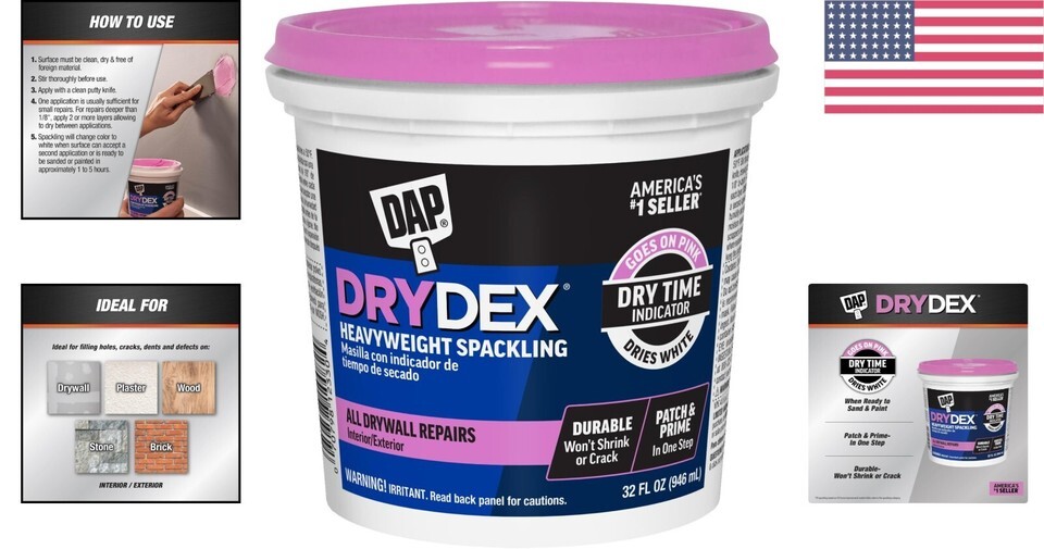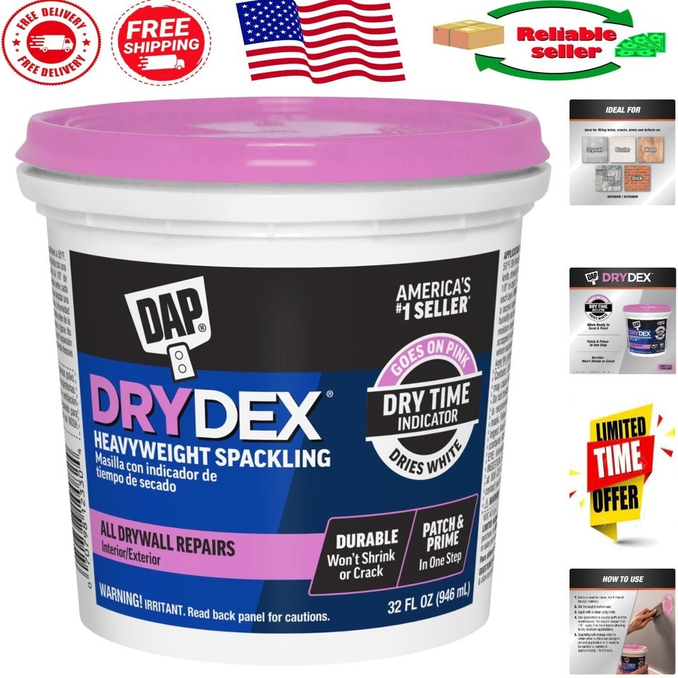 Transformative 1 qt DryDex Spackling Paste - Color Change Indicator for Walls ? ? ? ? ? ? ? ? ? ? ? ? ? ? ? ? ? ? Transformative 1 qt DryDex Spackling Paste Elevate Your Home Repair Experience If you're seeking a superior solution for wall imperfections, look no further than the transformative 1 qt DryDex Spackling Paste. This revolutionary spackling compound boasts a color change indicator that signals when it's ready for the next step?your perfect companion for achieving flawless walls. Key Features: Color Change Indicator: Goes on pink and transforms to white, indicating optimum dryness for sanding and painting. Convenient Squeeze Tube: Designed for effortless application, making your repair tasks easier and faster. Universal Use: Suitable for both interior and exterior projects. Versatile Application: Adheres beautifully to wood, plastic, drywall, gypsum, brick, and plaster. Quick Dry Time: Achieve results in just 5 hours for projects that can't wait. Product Specifications: Size: 1 quart Container Type: Pail Color: White Flash Point: Greater than 200 degrees F Temperature Range: 0 degrees to 150 degrees F VOC Compliant Why Choose DryDex Spackling Paste? The Transformative 1 qt DryDex Spackling Paste isn't just another wall repair product?it's a game changer. Its innovative color change technology takes the guesswork out of drywall repair, ensuring a smooth, professional finish every time. Whether you're patching holes or preparing surfaces for painting, this spackling paste simplifies the process, allowing both novices and experienced DIYers to achieve remarkable results. Say goodbye to uncertainty and hello to beautifully finished walls. Choose DryDex for your next home improvement project today! Shipping Free Fast Shipping - We offer free shipping to most of the USA with a normal delivery time of 3-7 days. However, due to the current situation, additional delivery time (up to 3 weeks) may be required for some items. Alternative Carriers - We may use alternative carriers (e.g. USPS, FedEx, UPS, etc.) to ensure your package arrives safely and on time. Due to the use of multiple carriers, we are unable to provide a tracking number automatically. Handling Time - Orders are processed and shipped within 1-2 business days of receiving cleared payment. Shipping Restrictions - Shipping to Alaska, Hawaii, Puerto Rico, Guam, and other US territories may incur shipping charges or delivery restrictions. Please contact us before ordering, or your order can be refunded/cancelled. State Restrictions - There may be restrictions based on your state of purchase. For example, certain items may not be shipped to California due to state regulations. Contact for Tracking Updates - If you require tracking updates or have any concerns about the delivery of your order, please feel free to contact us, and we will be happy to assist you. Return 30-Day Hassle-Free Returns - We want you to be completely satisfied with your purchase. If you are not, you can return the item within 30 days of receiving it for a full refund or exchange. Easy Return Process - To start a return, simply contact us and we will provide you with a prepaid return shipping label and detailed instructions. Restocking Fee - There are no restocking fees for returns. However, the buyer is responsible for return shipping costs if the return is not due to a seller's error. Refund Processing Time - Refunds will be processed within 5 business days of receiving the returned item in its condition. Payment We accept all major credit cards, PayPal, and Apple Pay for your convenience. Your payment information is secure and encrypted to ensure a safe and seamless transaction. Please complete your payment within 3 days of purchase to avoid any delays in shipping. Feedback Your feedback is extremely important to us. We strive to provide the best products and customer service possible. If you are satisfied with your purchase, please take a moment to leave us a positive review. If you have any concerns or issues with your order, please contact us before leaving negative feedback. We are committed to resolving any problems and ensuring your satisfaction. Contact Us If you have any questions or concerns, please feel free to out to our customer support team. You can contact us through the messaging system. We are available Monday to Friday, 9:00 am to 5:00 pm EST, and we will do our best to respond to your inquiry within 24 hours. Buy it now and enjoy a pleasant shopping experience! Model: Spackling Unit Quantity: 1 qt Material: Acrylic Type: Spackling Color: White Number in Pack: 1 Item Weight: 3.9 lb Item Thickness: 1 in Unit Type: fl oz