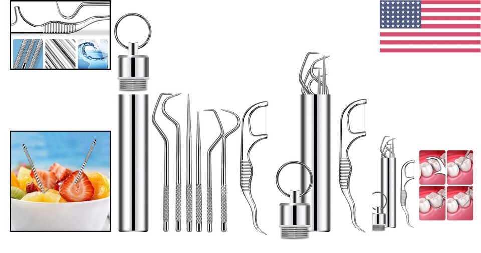Invest in your oral health with our Travel-Friendly Stainless Steel Toothpicks ? the most comprehensive dental cleaning toolset on the market. Say goodbye to disposable, weak dental tools! With an ergonomic design and robust build, these toothpicks will ensure you achieve the cleanest teeth and freshest breath effortlessly.