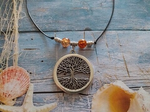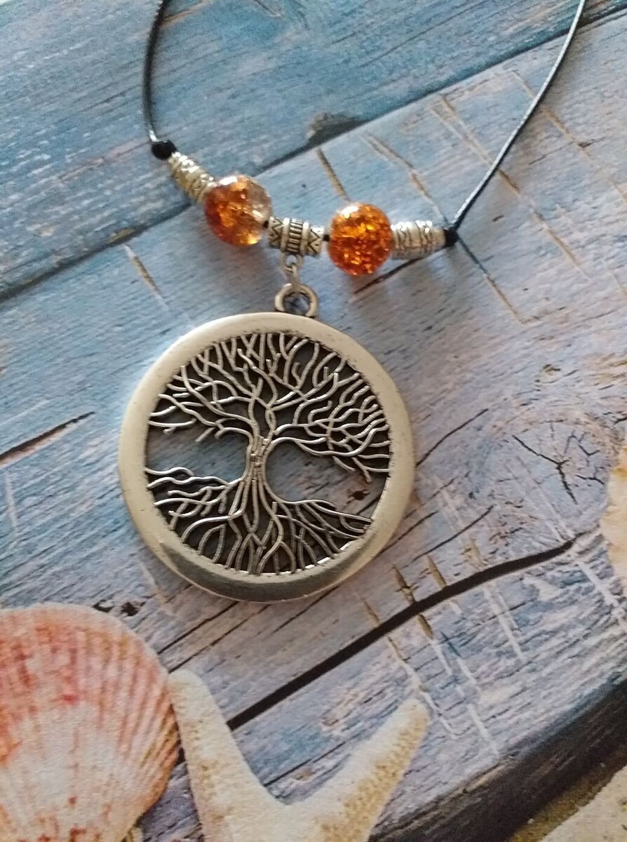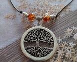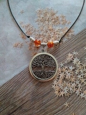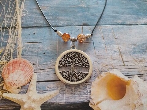 Beautiful filigree silver-tone Tree of Life necklace. Antique style Big silver tone pendant Gypsy style necklace. Boho necklace. Bohemian necklace. Ibiza style necklace. Gipsy Hippie necklace. Big silver-tone pendant Ibiza style beautiful leather necklace. Beautiful necklace brown-toned glass beads and silver-tone beads with Tree of Life pendant .