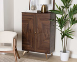 Features: Constructed from rubberwood, MDF wood, and LVL Walnut brown finish Six (6) interior shelves organize 18 pairs of shoes Angled plastic legs Handleless door design Geometric wood grain Set Includes: One (1) Shoe Cabinet