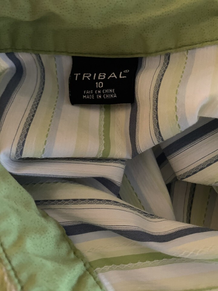 Tribal Long Sleeve Button Up Striped Top Size 10