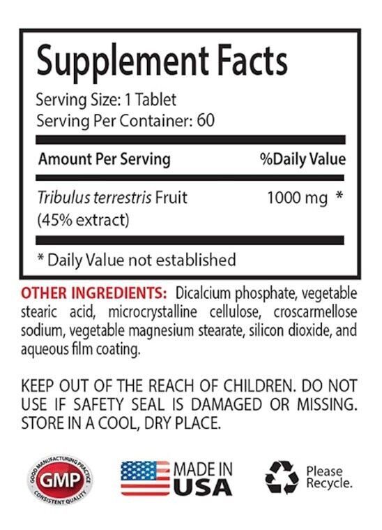 TRIBULUS TERRESTRIS EXTRACT: Our 1000mg Tablets are ideal for those looking to naturally support their overall wellness. Give your heart the nourishment it needs and deserves, while promoting a healthy lifestyle.Enjoy our Tribulus terrestris supplement that does more than just keep you healthy.