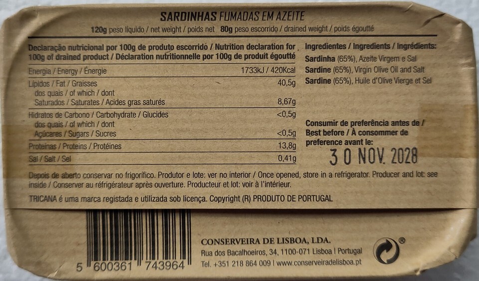 Produced by: Tricana - Conserveira de Lisboa Lda., Lisboa, since 1942