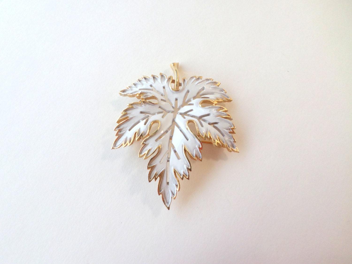 ?Style/Features: Maple leaf brooch with white enamel "snow" on gold, classic roll clasp with straight pin, strong signature
