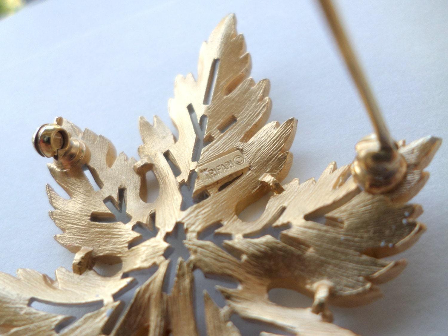 - Trifari Maple Leaf Brooch, Signed Vintage Pin 1960s