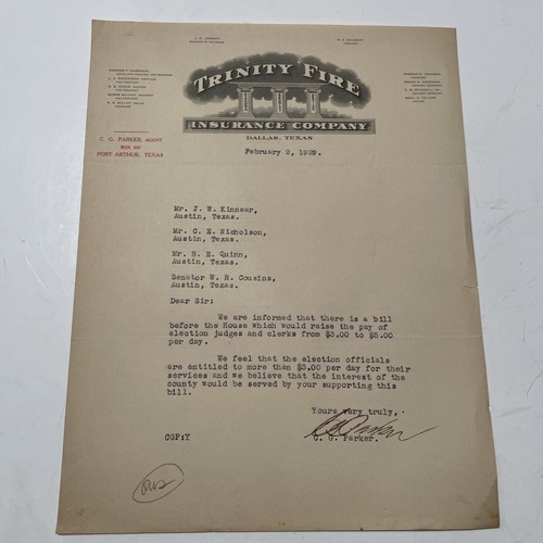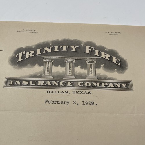 - Trinity Fire Insurance company Dallas Texas Port Arthur Tx 1929 Letter