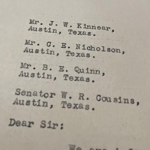 Letter is written to Texas state representatives.